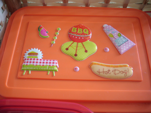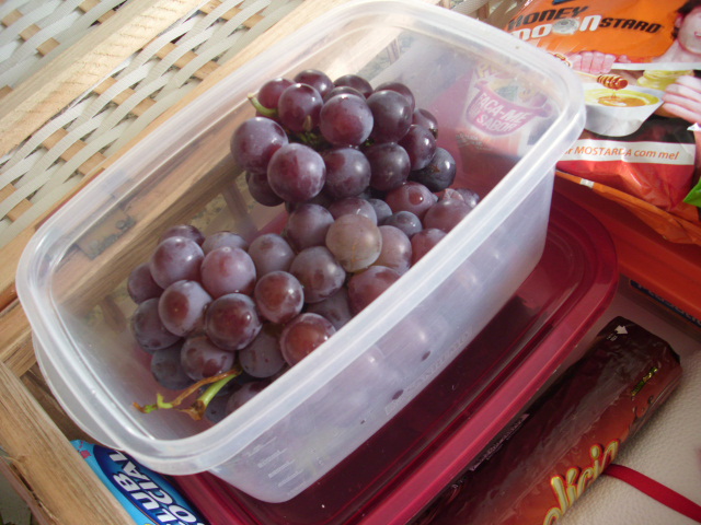 Colei uns adesivos de pic-nic nas vasilhas plásticas onde coloquei os sanduíches ...