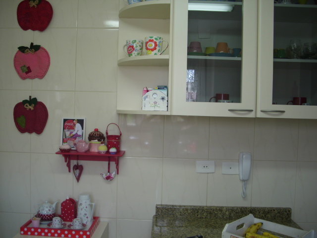 * Minhas maçãs lindas de tecido ( que amoooooo e que ganhei da queridaaaaaa amiga Fernanda do Blog Entrelaçar - vocês conhecem as frutas lindas que ela faz? Visita o blog dela que vc vai se encantar !! )ficaram encima do microondas...