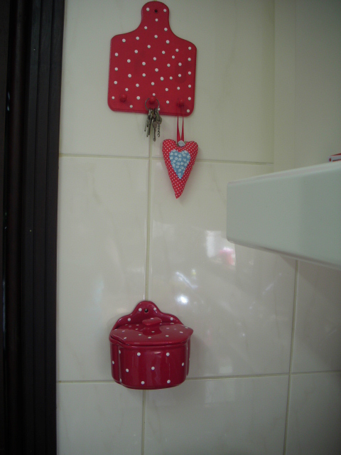 * Pendurei um coração de tecido no porta-chaves pra dar um charminho....