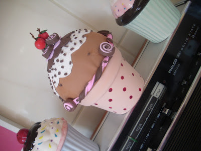 Esse cupcake grande é um baleiro feito de EVA e ganhei da minha querida sobrinha Adriana que não tem blog, mas faz coisas lindassssssss em EVA e em biscuit !! E os outros cupcakes eu comprei da Adriana Arteira Curiosa ( ela tem coisas lindas de viver ! )