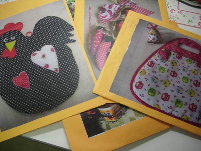 Comprei envelopes grandes ( do tamanho de A4 ), imprimi uma imagem do molde que eu colocaria em cada envelope e colei para melhor identificar cada um ...
