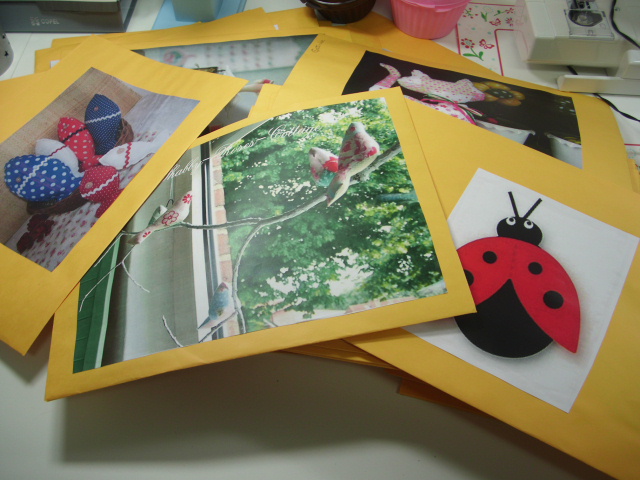 Comprei envelopes grandes ( do tamanho de A4 ), imprimi uma imagem do molde que eu colocaria em cada envelope e colei para melhor identificar cada um ...