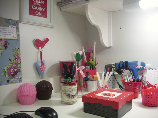 Olá Helena! Amei seu cantinho de fofurices... tão organizado, e mesmo quando você diz que está bagunçado é organizado.