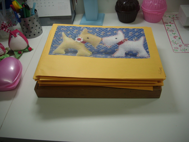 Comprei envelopes grandes ( do tamanho de A4 ), imprimi uma imagem do molde que eu colocaria em cada envelope e colei para melhor identificar cada um ...