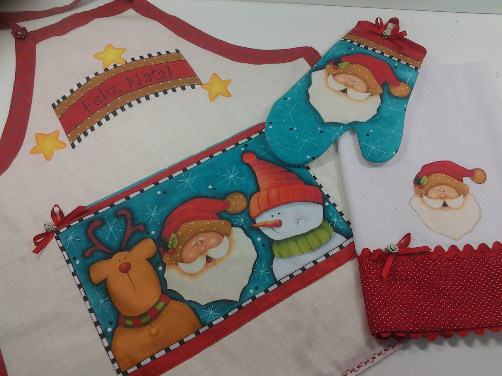 * Conjunto de avental, luva e pano de prato de Natal que fiz pra minha mãezinha usar na ceia de Natal ( ela amaaaa reunir a família e enfeitar a casa pro Natal ! )